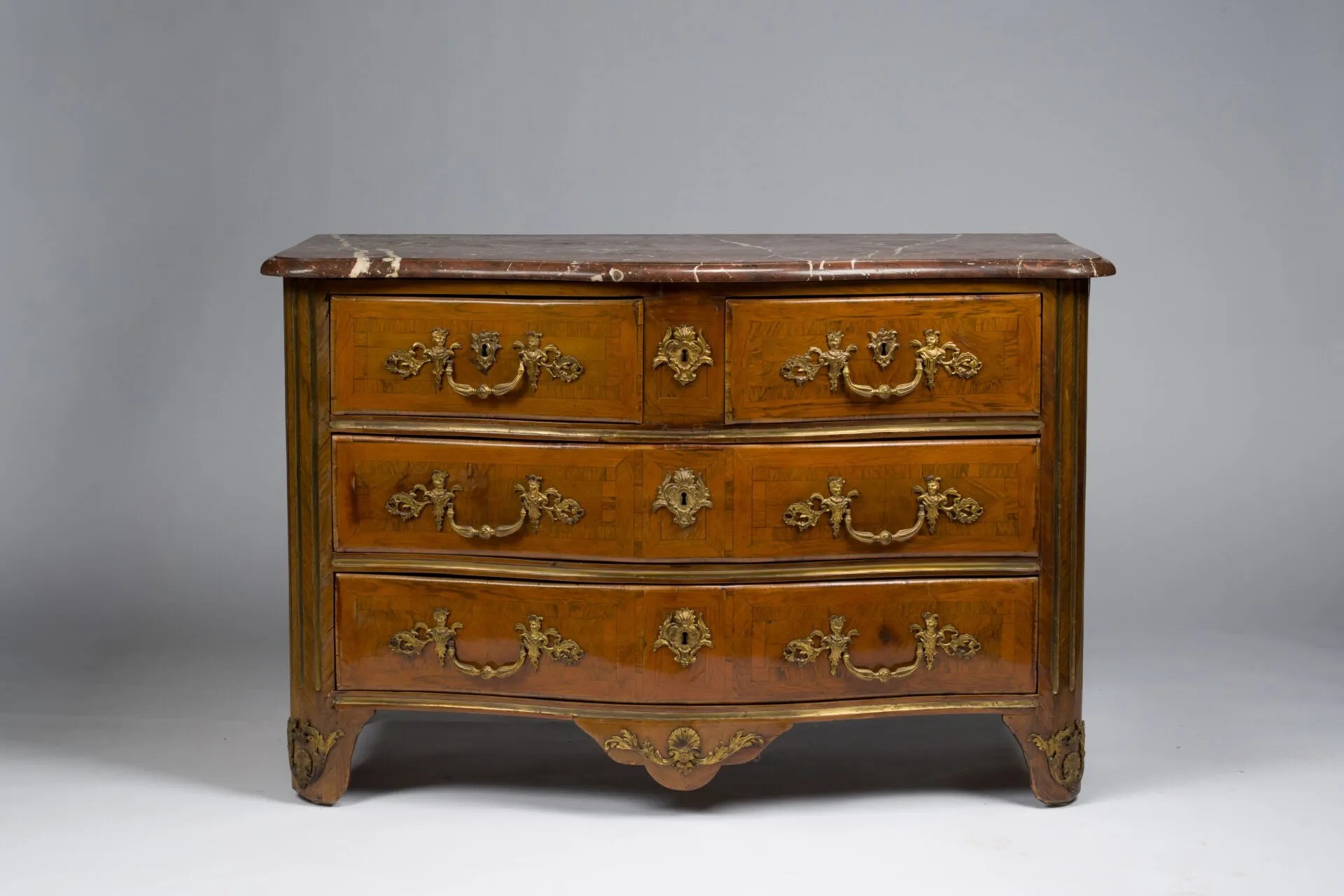 rare commode en palissandre massif sculpté à belle garniture de